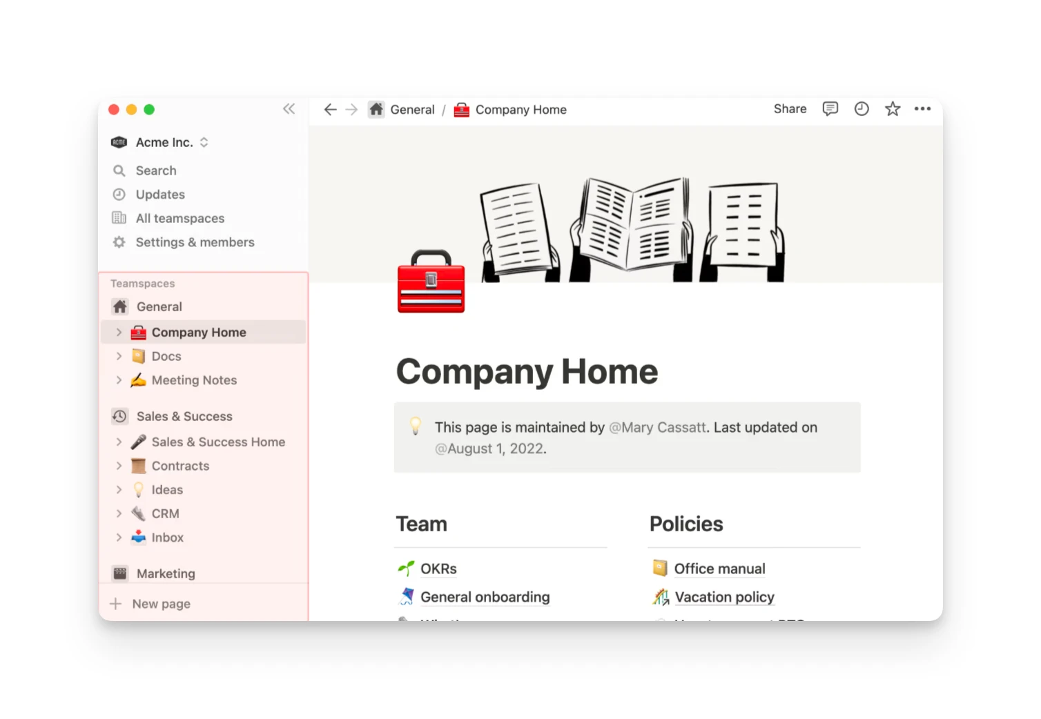 Everything in Notion is built from blocks: text, headings, images, embeds, databases, toggles, callouts, and more. Drag blocks to rearrange. Nest pages infinitely. Create a wiki structure that matches how your team thinks.